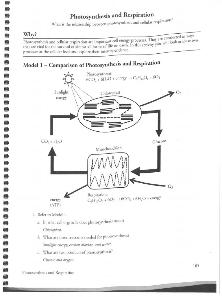 It is the process by which cells convert adp (adenosine diphoosphate) into atp (adenosine triphosphate). What four substances are recycled during photosynthesis and respiration? Site of cellular respiration that makes energy for the cell. What are the two products of photosynthesis? It can be aerobic, where oxygen is present, or anaerobic, where oxygen is absent, and a sugar such as glucose is required to fuel the process. Beside above, what things are recycled during photosynthesis and respiration? In what organelle does the process of photosynthesis occur? Klondikegj and 46 more users found this answer helpful. Cytoplasm and the mitochondria are the two places where cellular respiration occurs or u can say that the anaerobic part (glycolysis) occurs in the cytoplasm and aerobic respiration occurs in a cell organelle called mitochondria. What waste gas is given off during cellular respiration, and how does this help plants? Photosynthesis and cellular respiration are important cell energy processes. A detailed look at the structure of the mitochondrion ( figure below) helps to explain its role in the last stage of respiration, the electron transport chain. As you click on the links below, answer the following questions about photosynthesis and cellular respiration.